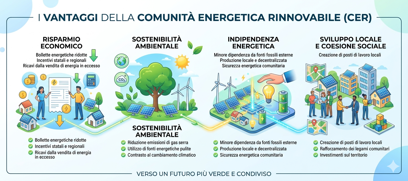 Zero Investimenti (opzionale): In molti modelli di CER, puoi aderire come semplice consumatore senza dover installare pannelli sul tuo tetto.